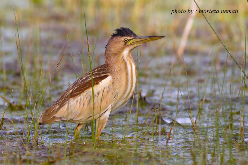 جزء حواصیل های خیلی کوچک است حدود ۳۳-۳۸ سانتی متر طول دارد. این پرنده یک گونه کوچک همراه با گردنی کوتاه ، نوکی نسبتا بلند با سطح شکمی نخودی رنگ است. در نرها پشت و تاج سر و بال ها سیاه می باشد و بر روی هر بال رگه های بزرگ سفید دیده می شود . مادهها دارای پشت قهوه ای و بال هایی با رگه های نخودی تیره هستند. منقار هر دو جنس زرد رنگ است و در فصل زاد و ولد قاعده آن قرمز می شود ، و پا ها سبز رنگ است. پرنده نا بالغ به طور کلی قهوه ای و رگه رگه می باشد. پرواز این پرنده معمولا در ارتفاع خیلی کم و توام با بال زدن های سریع است. در پرواز پوشپرهای کمرنگ بال با رنگ تیره بالها و پشت تضاد قابل توجهی نشان می دهد . به طورعمده در نورکم غروب و صبح خیلی زود فعال است. بوتیمار کوچک در میان نیزارها زاد و ولد می کند. آشیانه آن بین بوته هایی از نی های به هم با فته شده است، و ۴-۸ تخم می گذارد. دیدن آن بسیار سخت است ، زیرا خود را از انظار مخفی می کند . غذای بوتیمار کوچک ، حشره ها ، ماهی ها و دوزیستان می باشد.