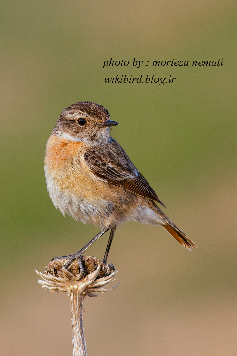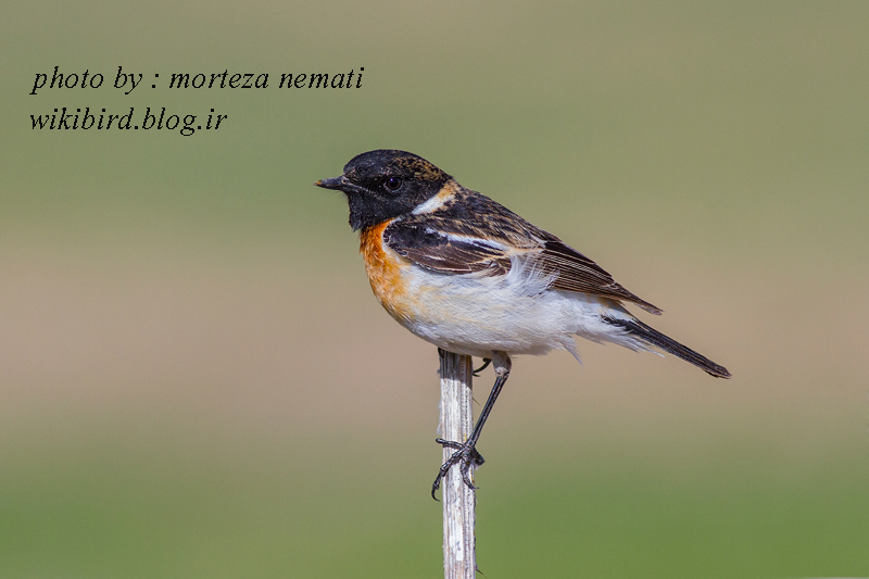چک سیبری (چک آسیایی) حدود دوازده و نیم سانتیمتر است؛ پرنده نر سر و گلوی سیاه مشخصی با نیم طوق پهن و سفید و نوار بالی سفید و باریک دارد . سطح پشتی آن تیره رنگ با لکههای سفید روی دمگاه و سطح شکمی آن بلوطی پررنگ است که در ناحیه شکم به نخودی می گراید ، پروبال پاییزی آن قهوهایتر و تیرهتر است . ماده و نابالغ این پرنده سطح پشتی قهوهای با رگههای سیاه دارند و روی دمگاهشان اثری از رنگ سفید دیده نمی شود ولی علائم سیاهرنگی روی گلو دارند . معمولا در بالای بوتهها و روی سیمهای تلگراف می نشیند و در این حالت مرتبا بالها و دم خود را تکان می دهد ، پروازش در ارتفاع کم و توام با تکانهای خاصی است.